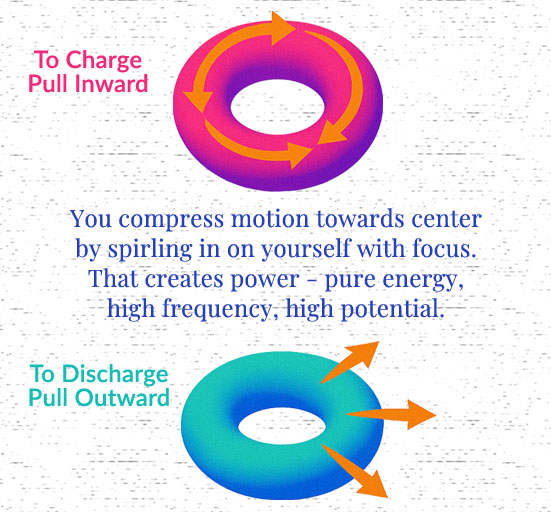 You compress motion toward center, like spiraling in on yourself with focus. That creates power — pure energy, high frequency, high potential.